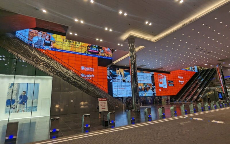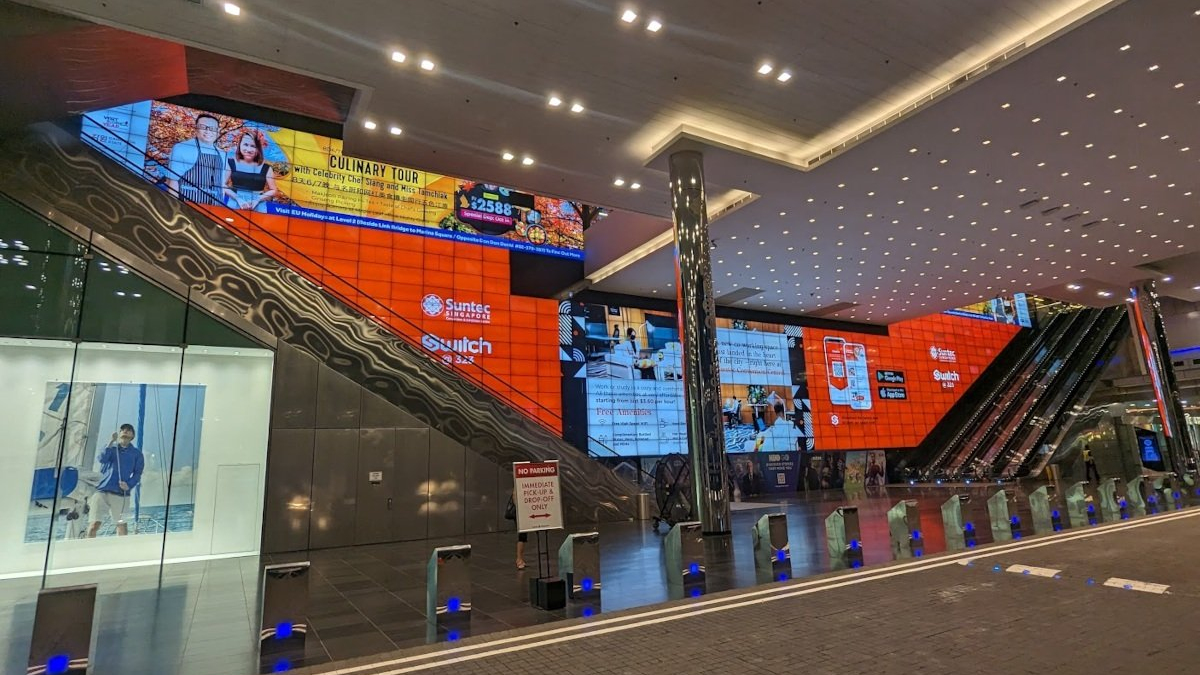 The content is current and was visibly updated during our tour. It can be assumed that some of the original 664 displays were replaced. However, this requires a sophisticated maintenance concept and continuous monitoring. Kudos to the integrators involved and Suntec.