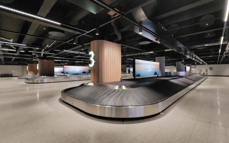 New to the DooH portfolio are 18 high-impact screens in the baggage claim area, installed in just a few days during autumn 2024. The network includes 16 Flip Chip LED displays, each with a 200-inch diagonal and a resolution of 3072 x 864 pixels. Four synchronized LED screens are positioned at each baggage carousel, simultaneously displaying the same campaign for maximum visual impact and advertising dominance.