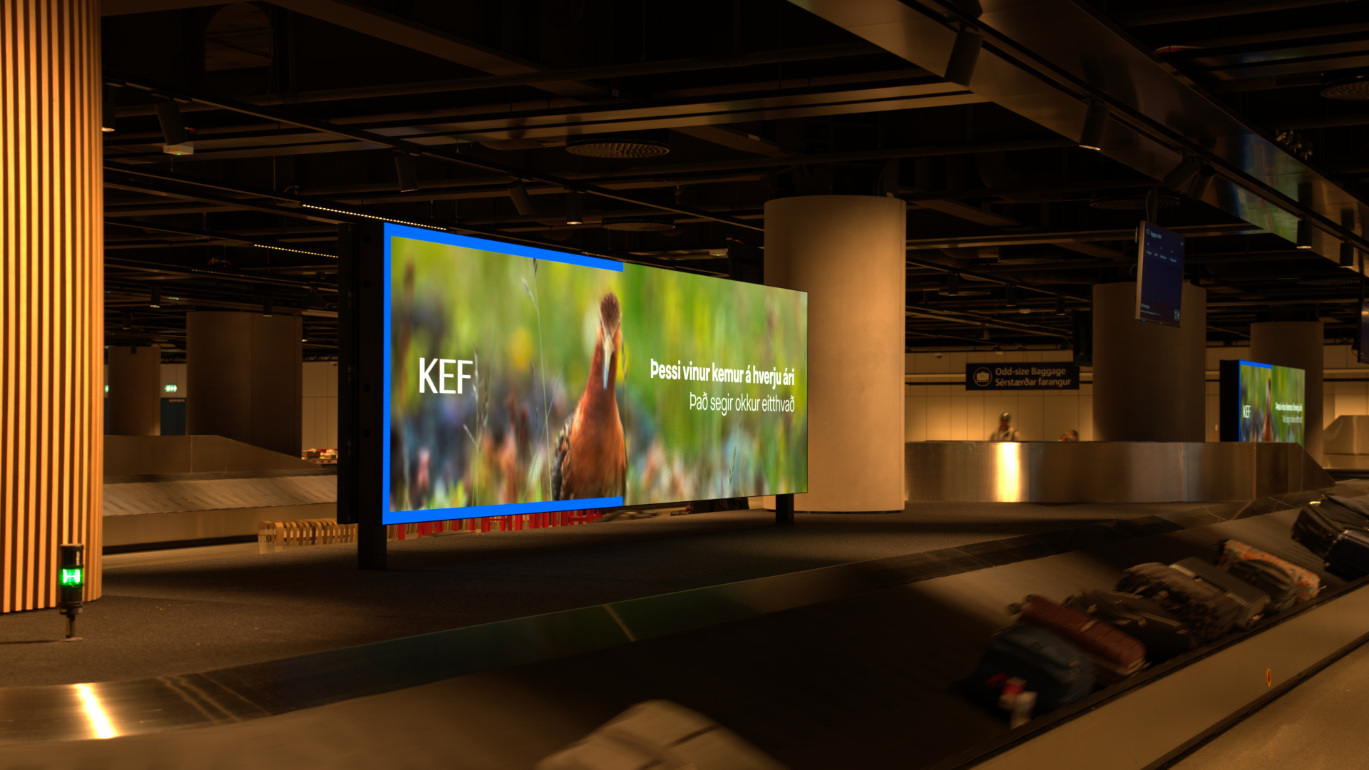 Shortly after landing, I’m greeted by a delegation for a site inspection of the latest digital signage installations. KEF was the first major LED Flip Chip DvLED project at a European airport, implemented by Icelandic digital signage integrator Ofar in collaboration with Sharp/NEC. The project was commissioned by airport operator Isavia, which manages all static and digital advertising media in-house.