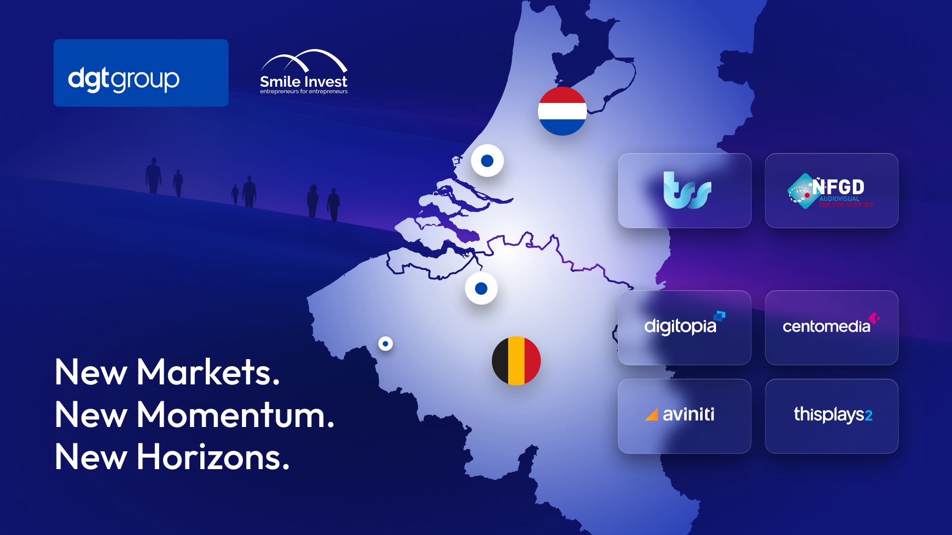 The Belgian company Dgtgroup is expanding through acquisitions to become a leading digital signage provider with its own CMS platforms in Belgium and the Netherlands. With its two latest acquisitions, TSS and NFGD, Dgtgroup now has 120 employees and generates €40 million in annual revenue.