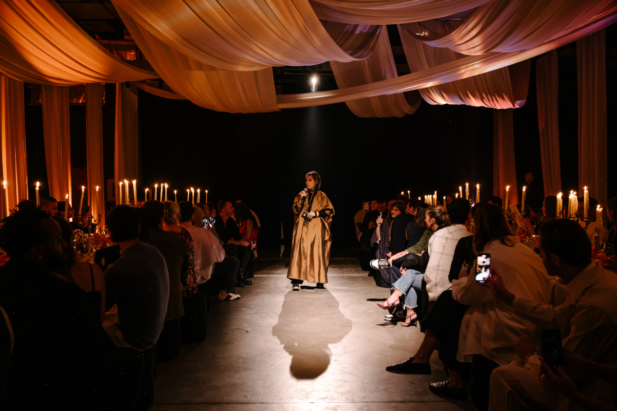 Sima Collective, the venue for the dinner, houses nine artist studios and supports emerging and mid-career talent across the UAE and the region. Its program of exhibitions, workshops, and open-studio events informed the design approach, creating an environment that emphasized local creative practices.