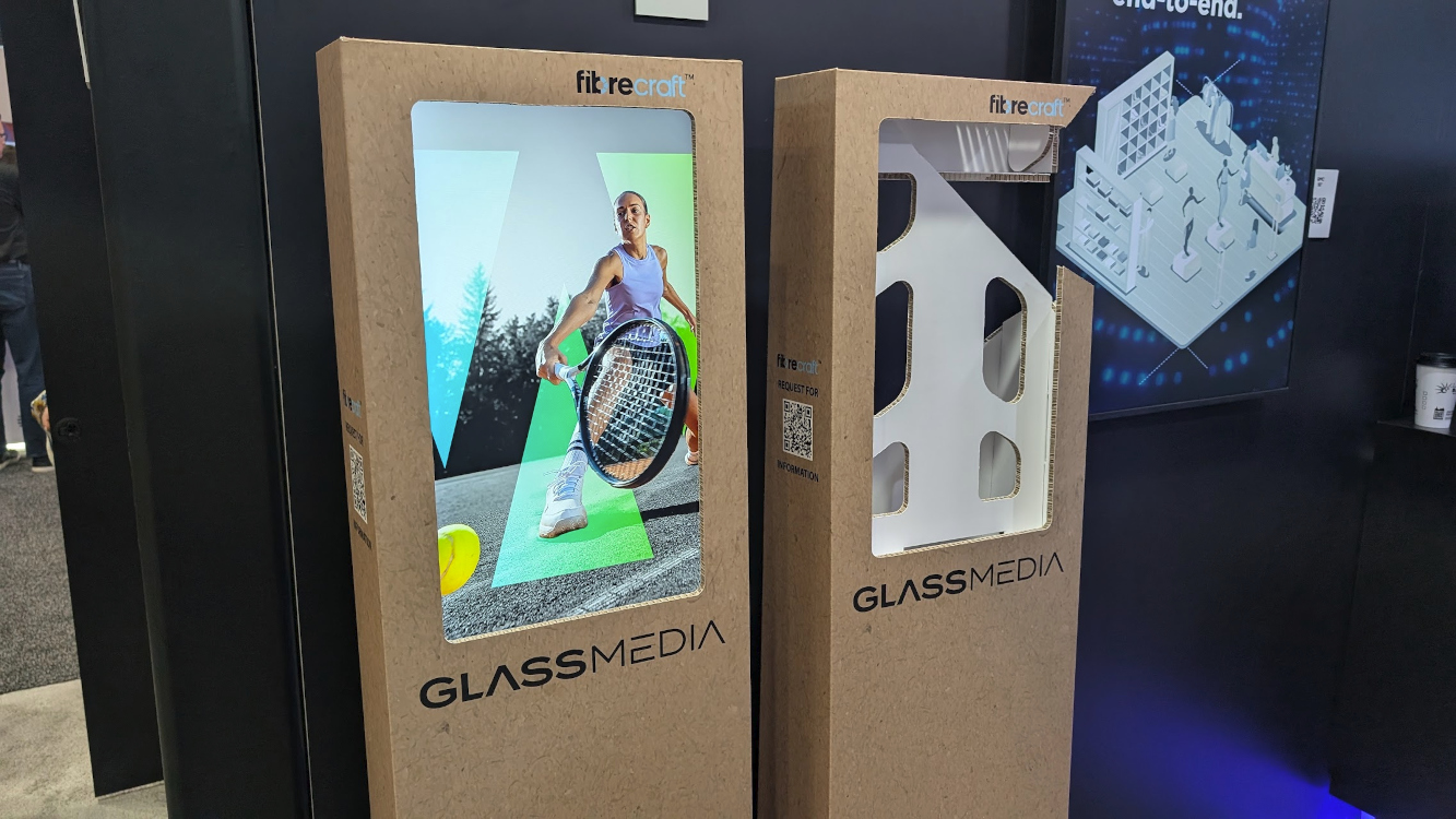 At NRF in New York, sustainability surfaced where few expected it. While AI and LED digital signage displays drew most of the attention, the more meaningful sustainability story played out away from the spotlight. Samsung’s booth, for example, showcased its spatial LCD displays, but the true eye‑opener was found in a corner: cardboard totems by Glass Media and compact e‑paper screens that offered a surprisingly disruptive alternative to traditional digital signage.