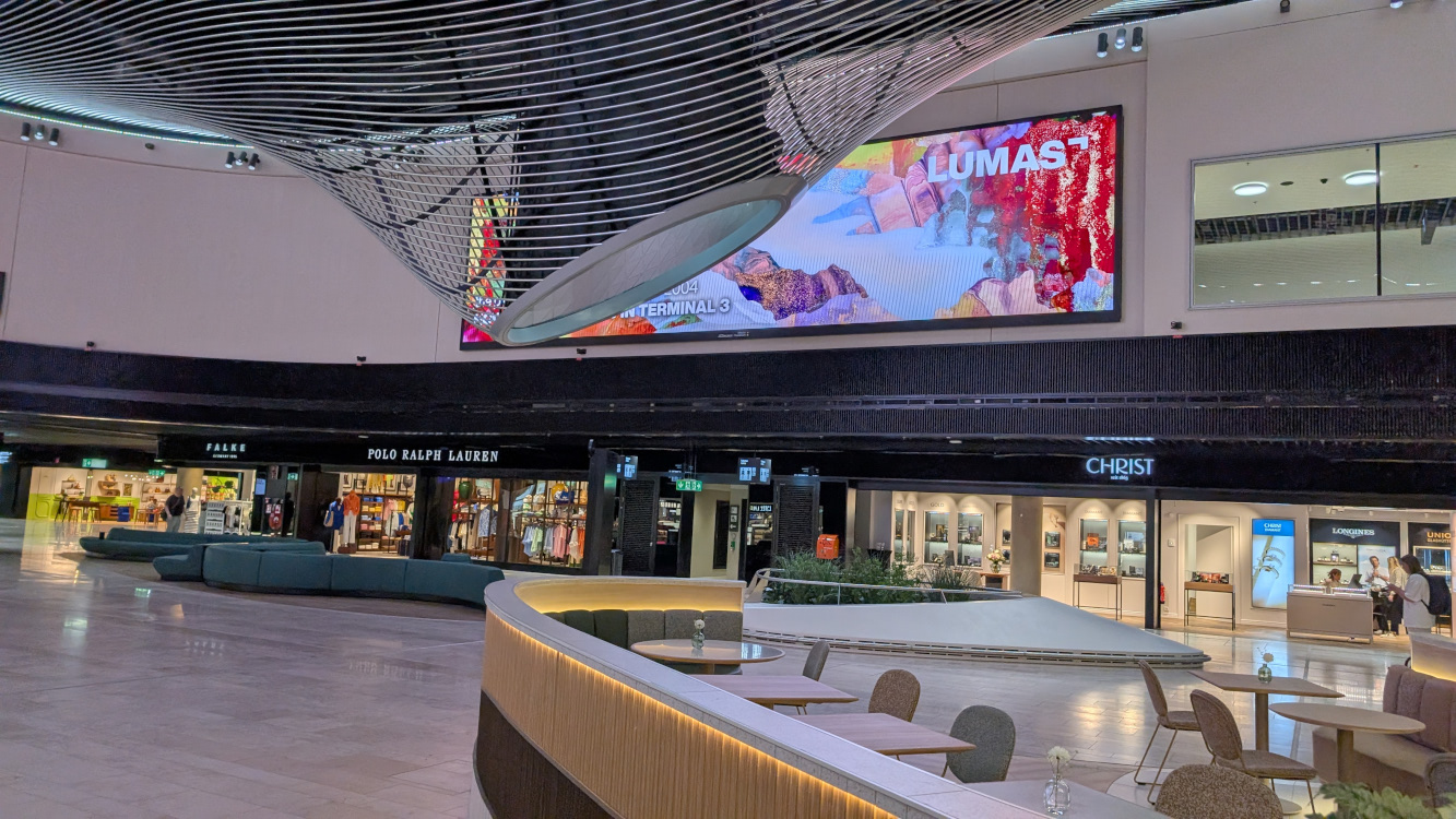 The DooH journey continues in the baggage claim area, where each baggage carousel features four 98-inch Samsung screens. Additional areas above the carousels offer further expansion potential, with two large-format welcome posters planned for the next phase. Together, these will span more than 300 square meters, making them the largest static indoor advertising surfaces in the entire airport, visible across the baggage hall.