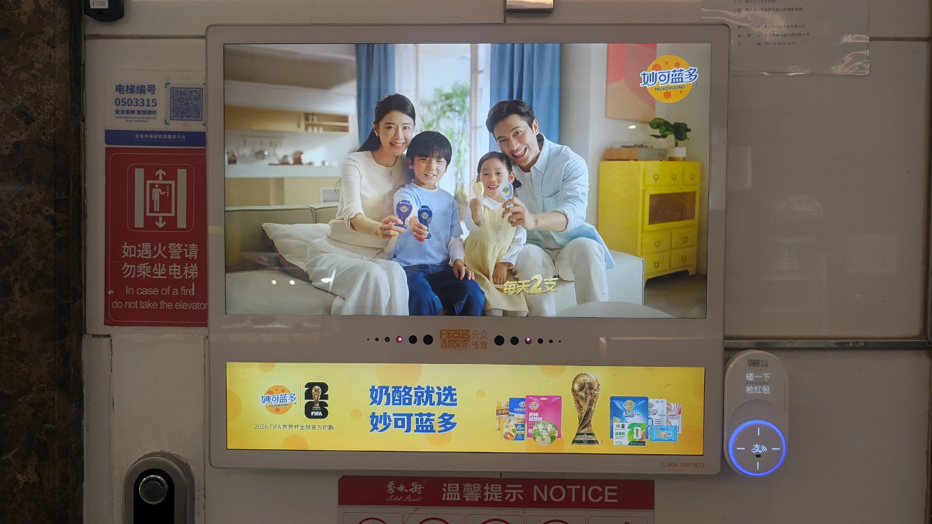 The key advantage of Focus Media’s two‑screen approach lies in its simplicity for advertisers. Existing TV commercials can be placed on the main screen without modification, significantly lowering creative barriers. The secondary bar‑type display is then used for logo placements, calls to action, and localized or time‑dependent information.