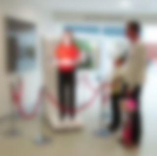 Following the flick of a switch, EVA (which stands for Electronic Virtual Assistant), began her duties in the foyer of Forth Valley Royal Hospital on Monday 16th April 2012. These include relaying information on how to quit smoking, reminding visitors to use hand gel to help stop the spread of infection and details of what’s on the menu in the hospital’s restaurant.