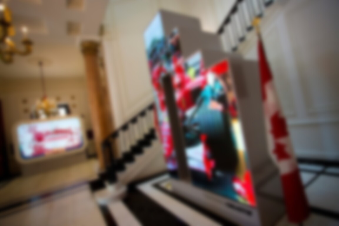 Christie Digital has worked a partnership with Canada’s Department of Foreign Affairs and International Trade’s that sees a couple of big display walls running through the Olympics at Canada Olympic House in Trafalgar Square.