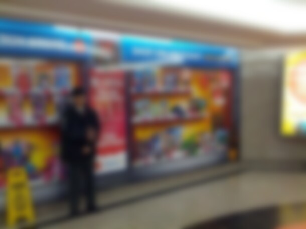 I was being swept in a wave of humanity out of Toronto’s Union Station the other day and into a rotunda area that splits the hordes in two directions into the massive underground walkway system below the business district. Right at the fork in the PATH system was this virtual store being run by Walmart and Mattel.