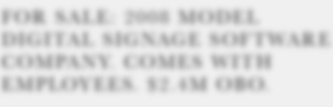 Explaining that new management is needed to take the business to the next level, an unnamed West Coast US digital signage company is up for sale, asking price $2.4 million.