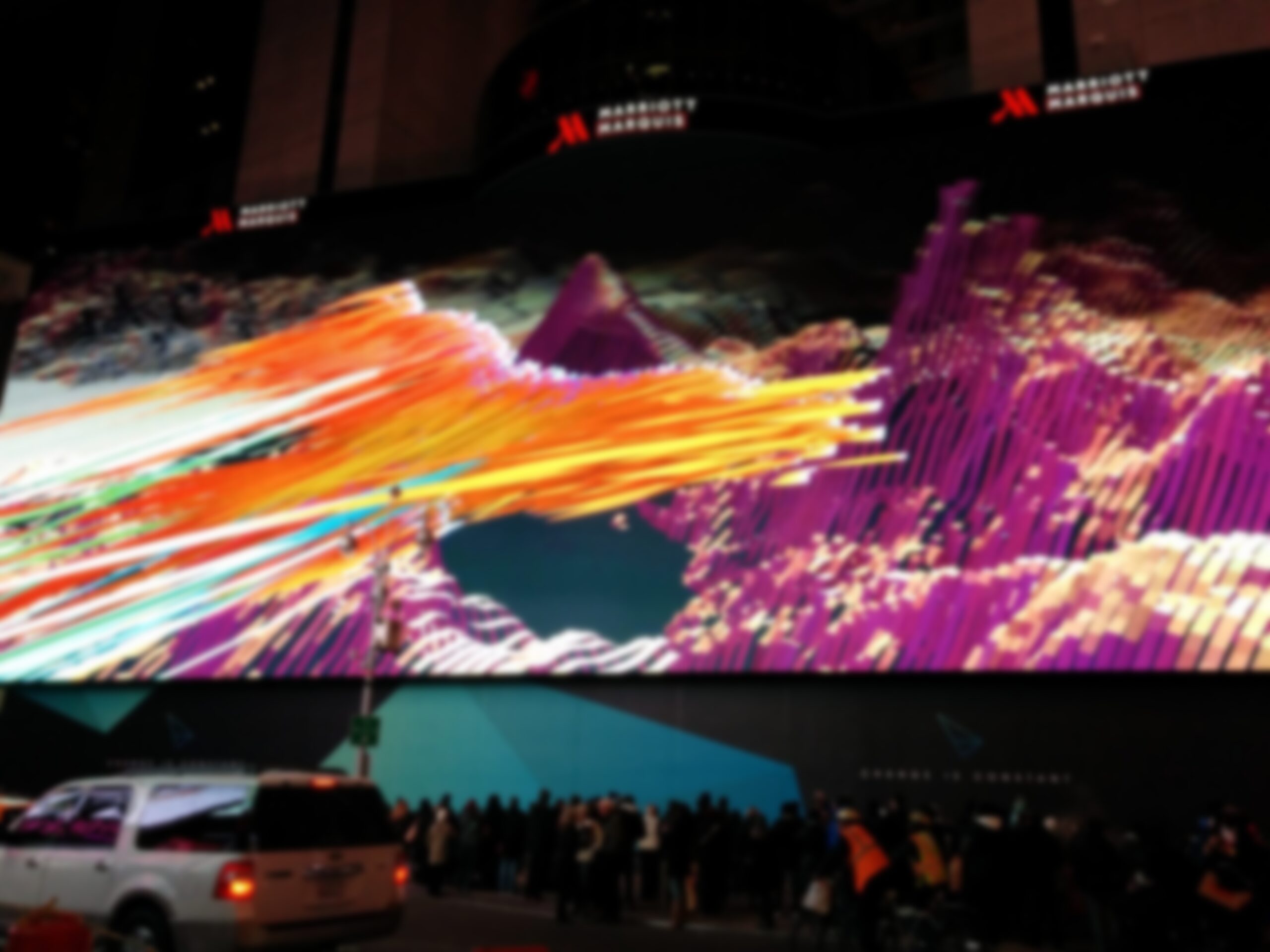 Here’s a nice extended length video somebody shot using a tripod, or something, showing the content on the Billboard That Ate Times Square. This is opening night content that will run for I dunno how long, but it is a hugely safe bet cool, experiential stuff will be supplanted pretty quickly by more traditional advertising creative.