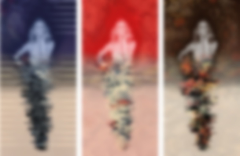 The illuminated stairs beckon, as camera flashes simulate the frenzied atmosphere of a fashion show. Once at the top of the stairs, visitors trigger a camera that takes a snapshot of their silhouette. These images then form part of a generative design, featuring Gaultier motifs and palettes. The resulting video composition is unique to each participant, and is projected on the large-scale backdrop of the staircase landing. Always in flux, the projection runs continuously in real-time, remixing imagery from past visitors with new colours and motifs to form original visuals throughout the four months of the exhibition.