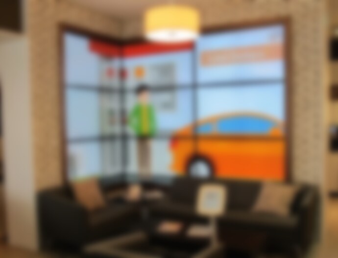 The CAA store just opened this spring in Burlington, and the centrepiece for this new CAA concept store design is a nine-screen wrap-around video wall. There are more screens around the store functioning as digital posters.