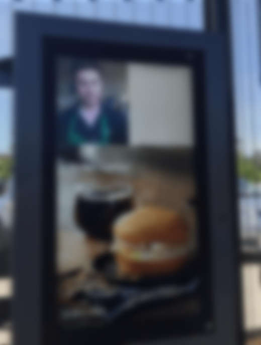The screens will do promotion, as well as order confirmation and a show a live video stream of the barista inside who is handling the order.