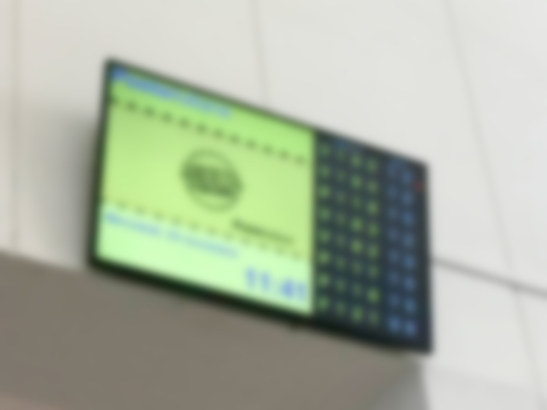 No indication of the signage software vendor. If I had to guess, there isn’t one – as this likely web services stuff just querying and showing data (the wait number and counter) from a queue management platform.