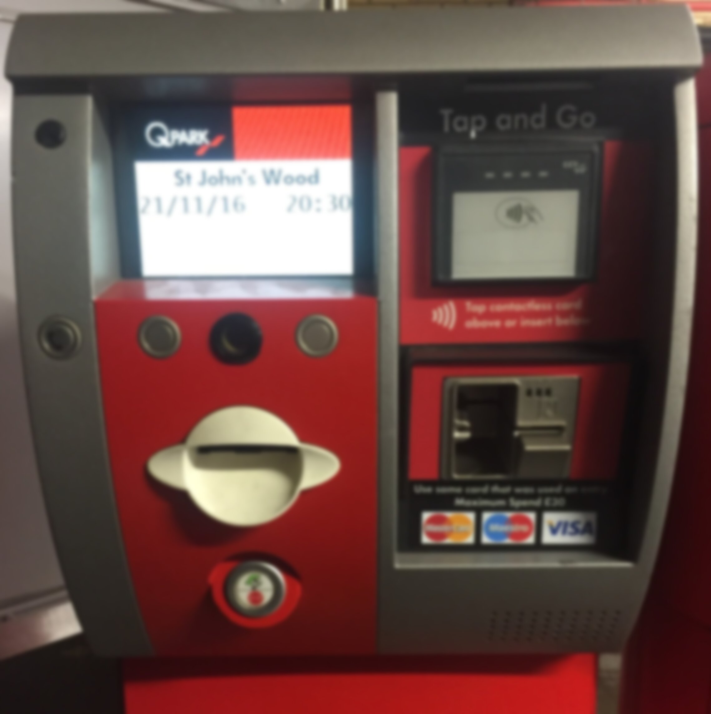 I had to call the Q-Park support (nice piece of UX: a button with a phone symbol). After much to-ing and fro-ing they pulled up the camera feed and told me I was using it wrong. Slap it on the white bit, they said. I looked at the white slot on the left and off-white pad on the right and still assuming I was reading the cues correctly told them their machine wasn’t working. Nope. It was working alright.
