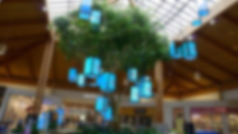 This is the set-up, launched I think in 2014, at the Louis Joliet Mall in way suburban Chicago. The tree is surrounded by 28 high-bright 40-inch LCDs, 40 LED panels and 45 LED tube pendants.