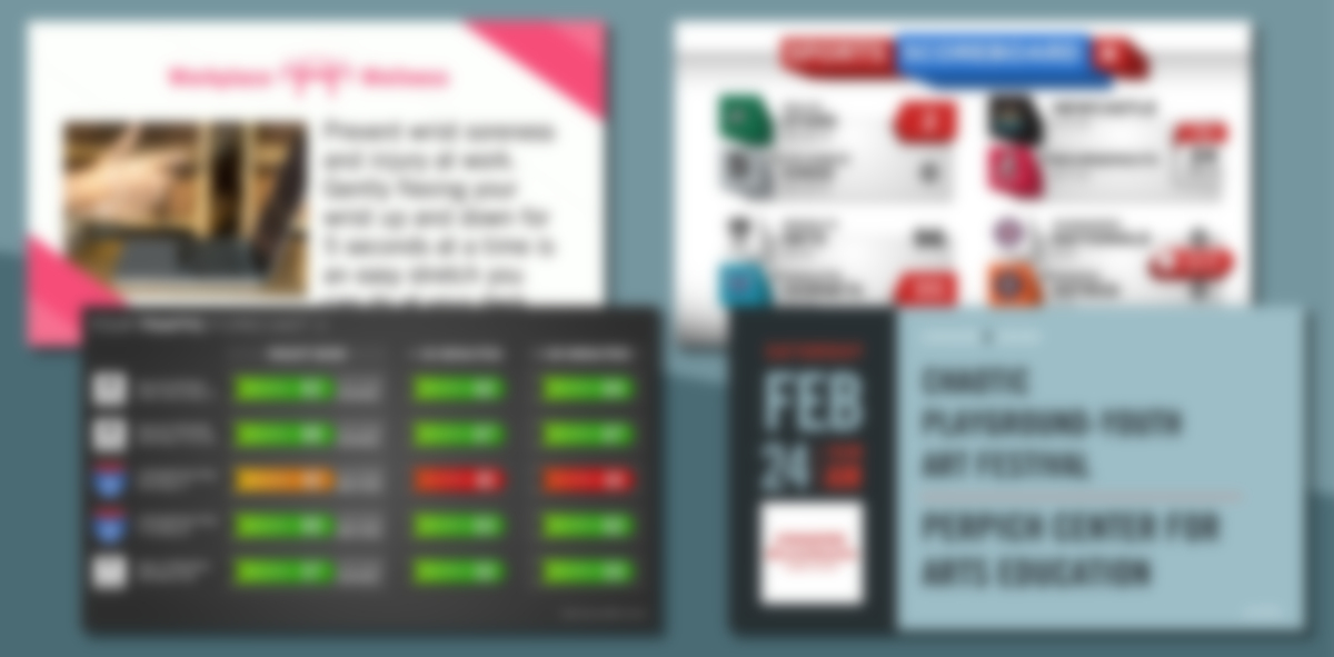 They say a picture is worth a thousand words, so why not deliver the day’s news in easy, digestible chunks? Show the latest stories for news, sports or entertainment using an HD photo chosen specifically for each item, along with a succinct headline. This is more visually appealing and easier to read than a whole article, and easier to see from a distance. You decide on the topics, length of dwell time, number of news items to show and more.