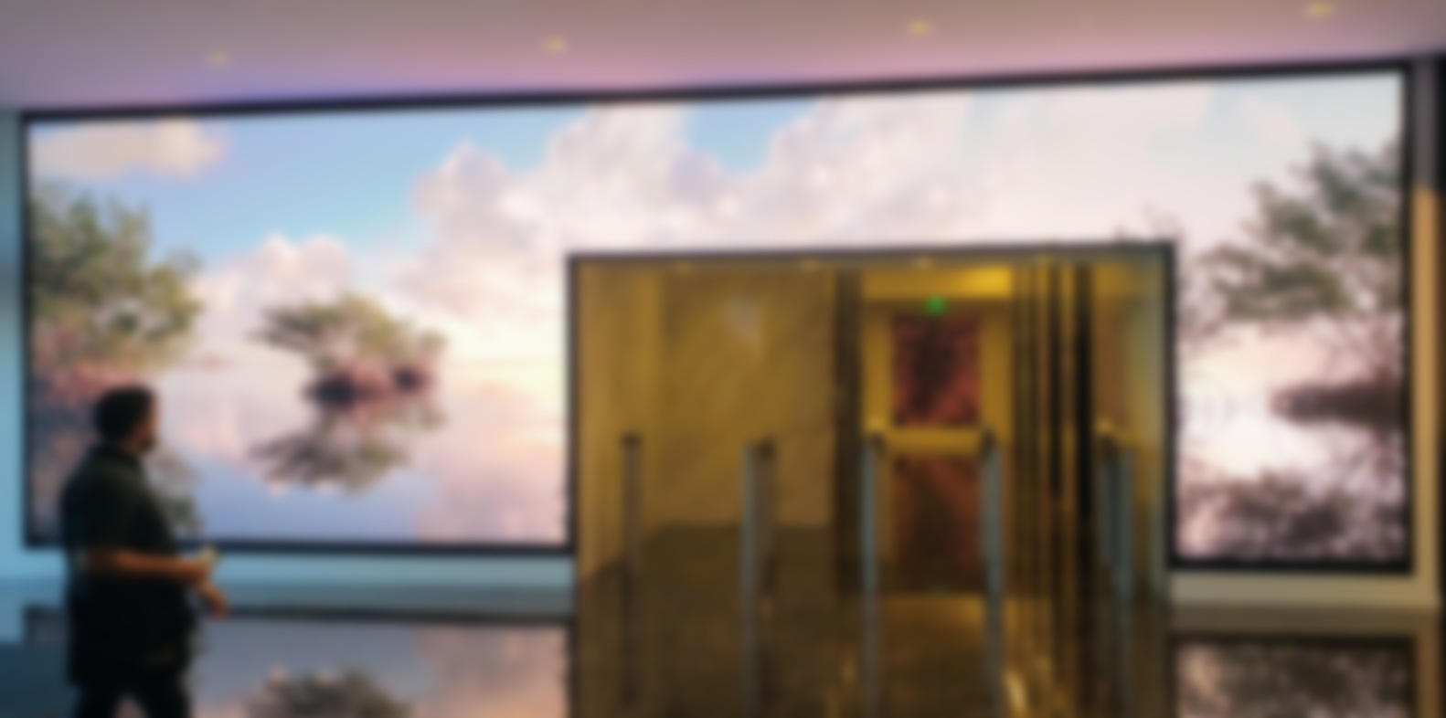 The 30-storey office block’s facelift includes a direct view LED feature wall that wraps around the entry to the elevator lobby. Not totally sure of the dimension, but I do know it is using Samsung 2.5mm LED and running off a single player box.