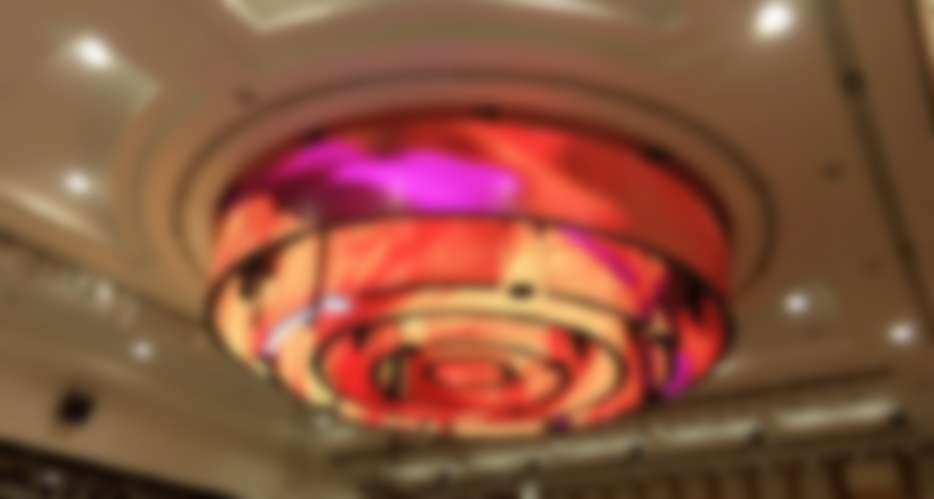 It is an LED chandelier thingie (technical term) made up of five 4mm pixel pitch flexible LEDs, There are also 12 suspended LED columns. The thing can travel up and down more than 30 feet.