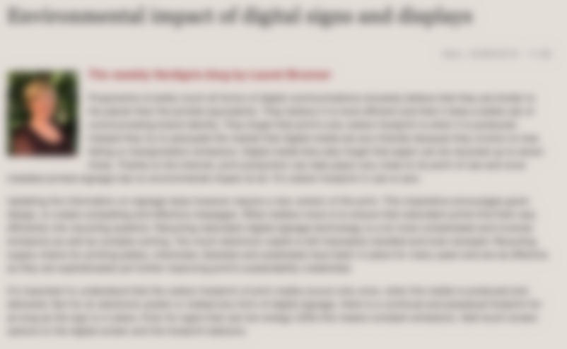 The graphic printing industry is making the argument that printed signage has a more positive impact than the digital versions – suggesting that while print has a one-time carbon footprint, digital has a running footprint because of energy consumption.