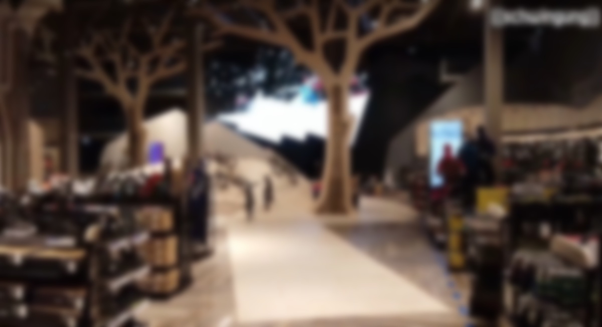 So it’s nice to see this project for athletic retailer Intersport store in Graz, Austria, which has an irregular, skewed shape that works and plays with the physical characteristics of the big store.