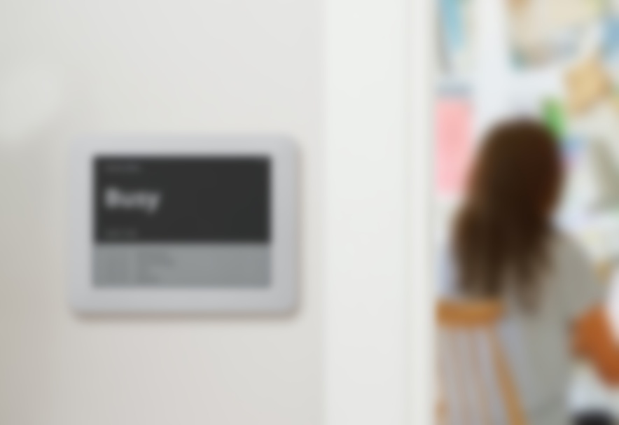 Joan is an e-paper room sign used in business, but this version is meant for work at homers.