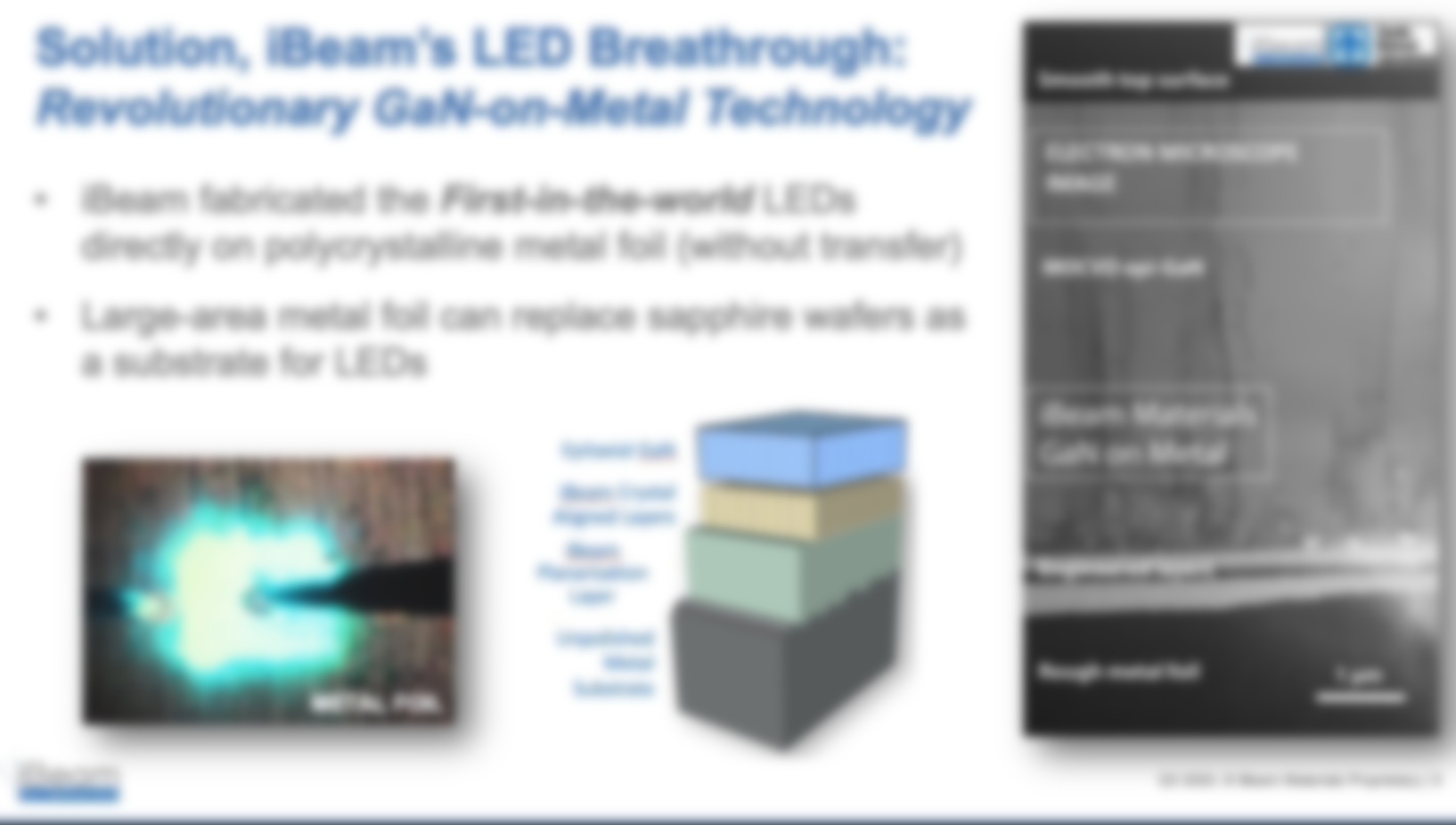 A Santa Fe, NM company called iBeam Materials – a spinout from the famed Los Alamos labs – provided a progress report presentation on its technology, which produces microLEDs on sheets of paper-thin metal foil.