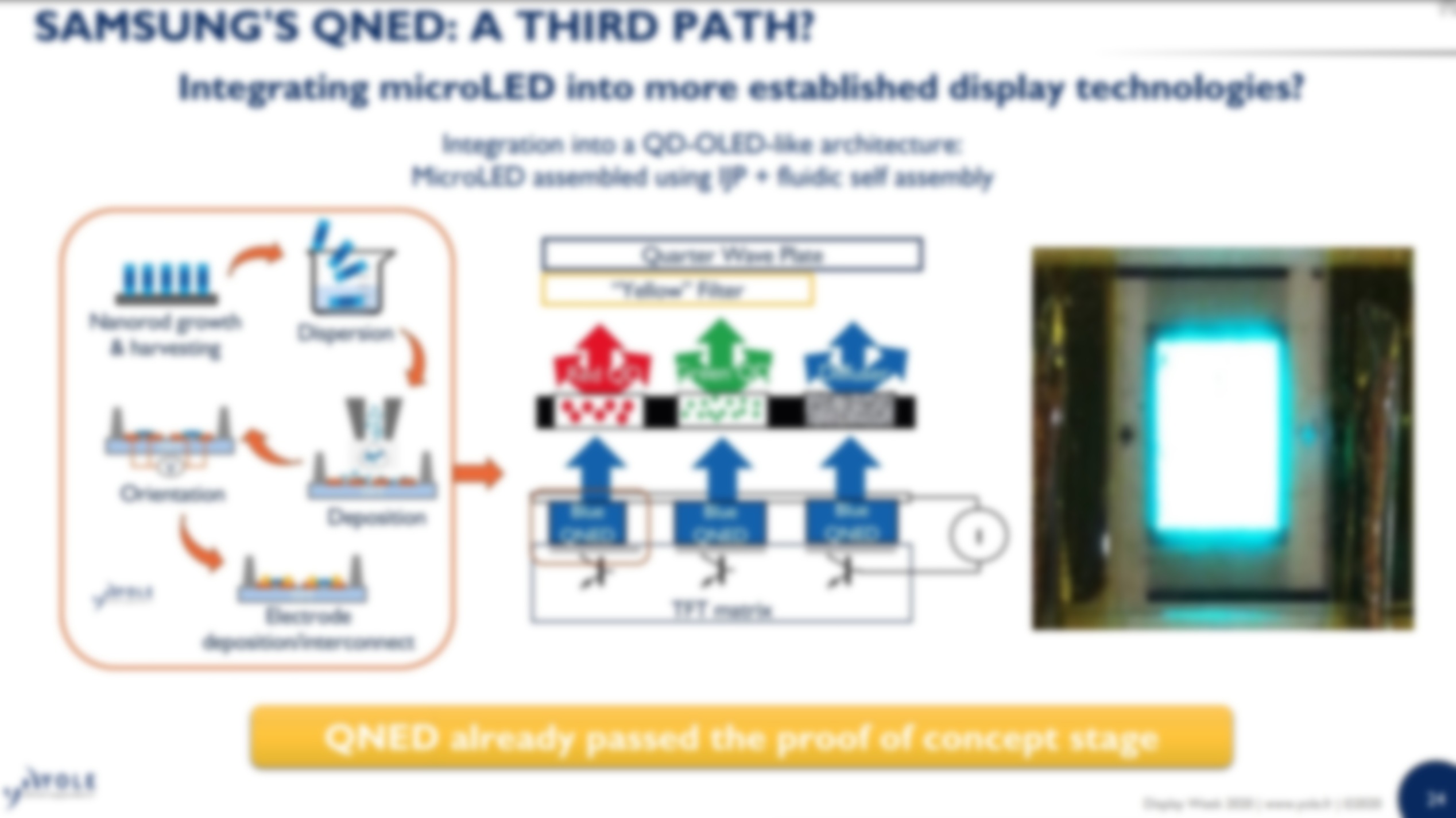 Eric Virey, a market analyst who closely follows the LED display market, said in his DisplayWeek 2020 talk that Samsung was well beyond the proof of concept stage with QNED and promising, but also that it was “not yet ready for prime time.”