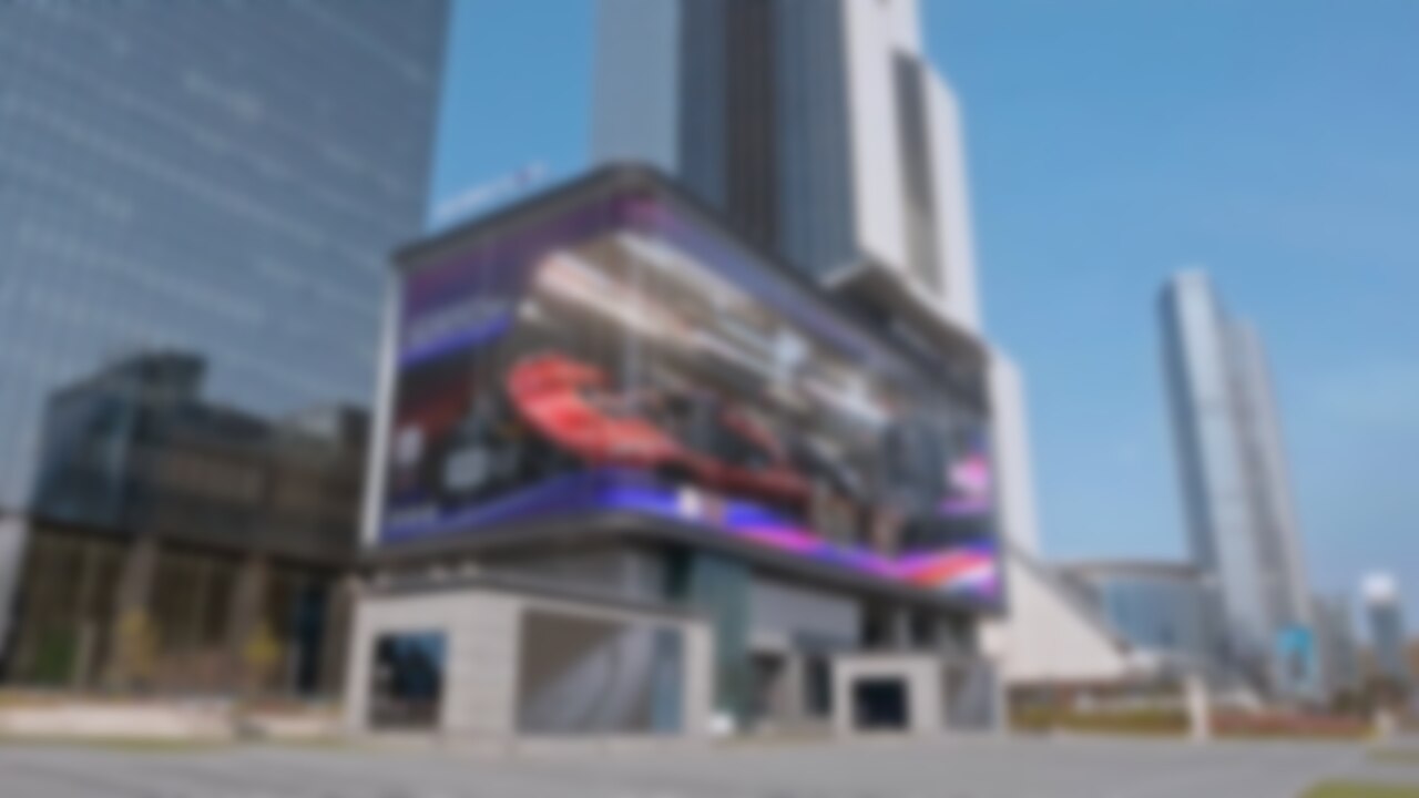 The display wraps around a corner of the SMTown Coex Artium building, part of the Coex Convention and Exhibition Center in the upscale Gangnam district.