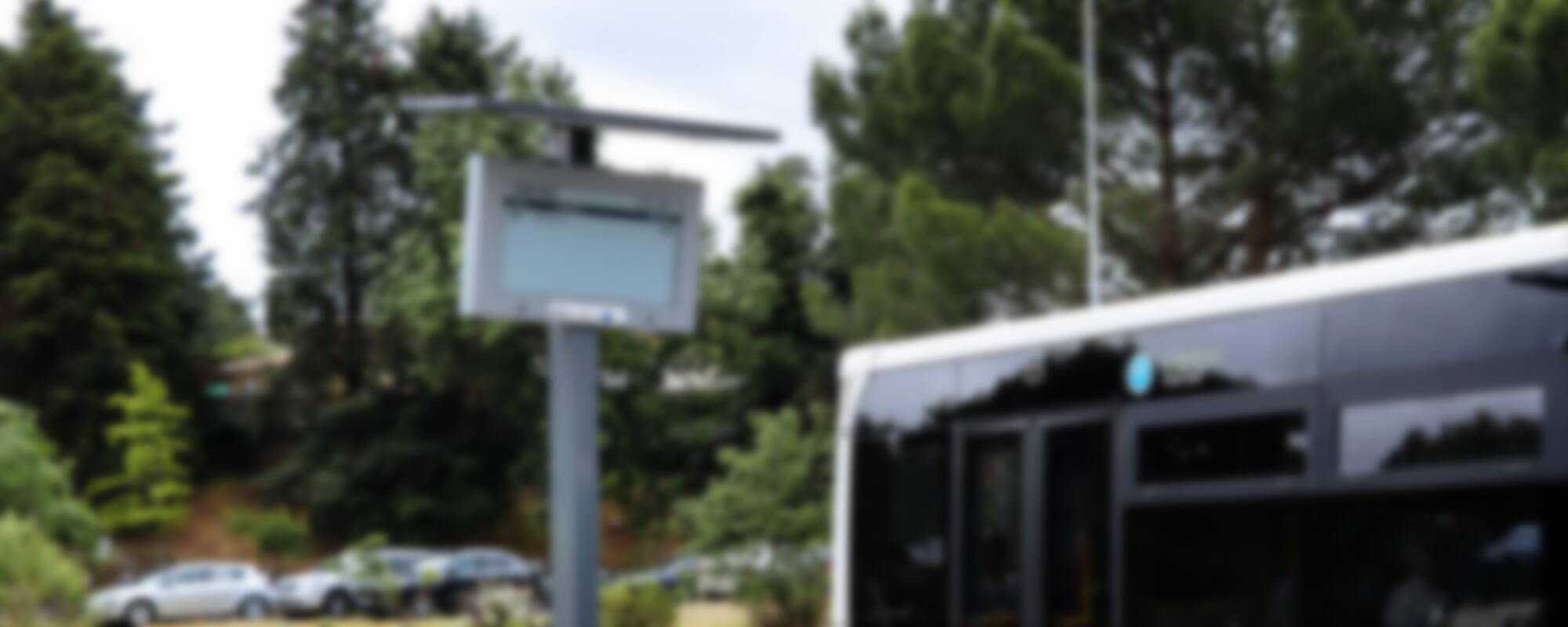The now has 25 of these “completely self-sustainable bus stops” – which are characterized by a post-mounted 32-inch e-paper display that has a solar collector positioned like a canopy atop the post.