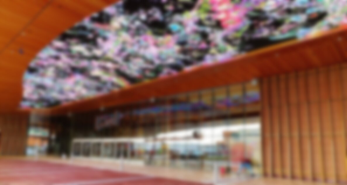 The artwork is moving floral images by the digital artist Jennifer Steinkamp. You can read the artist’s description of what this is all about here.