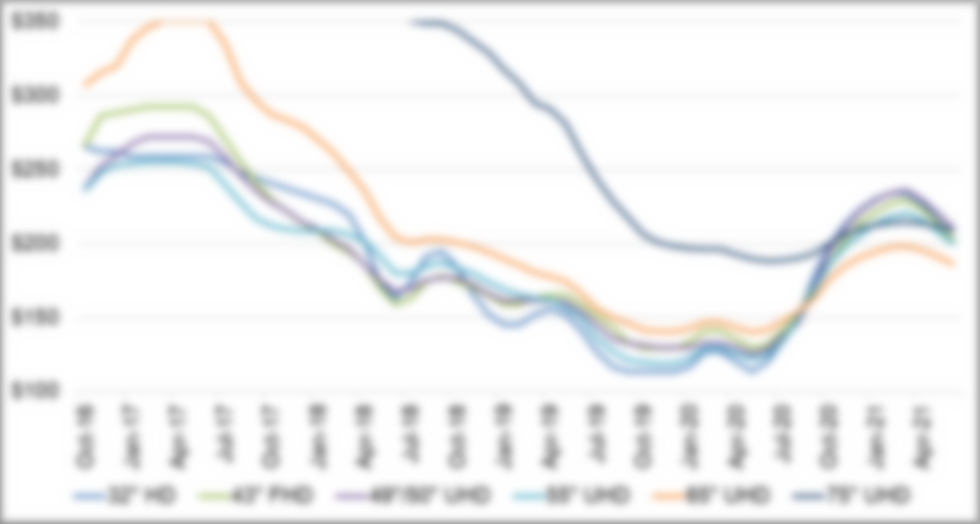 Prices for every size of TV panel will increase in Q1 at a slower rate, ranging from 4% for 75” to 13% for 43”. Although we continue to expect that the long-term downward trend will resume in the second quarter of 2021, we no longer expect that panel prices will come close to the all-time lows seen earlier this year. The situation remains dynamic, and the pandemic may continue to affect both supply and demand.
