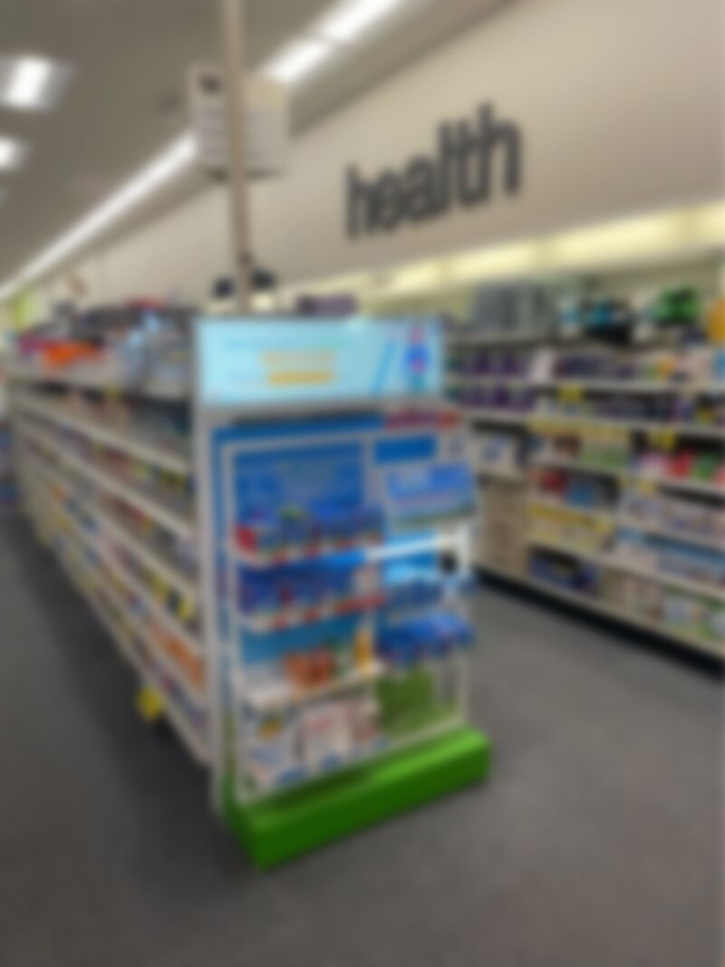 Skinny LCD Used As Header On Nice Chain Drug End Cap For Allergy Relief Product