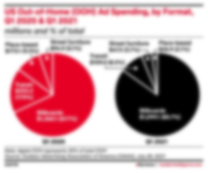For billboards, spend dropped from $1.26 billion to $1.10 billion. Transit, place-based, and street furniture (like poster totems) all saw big drops.