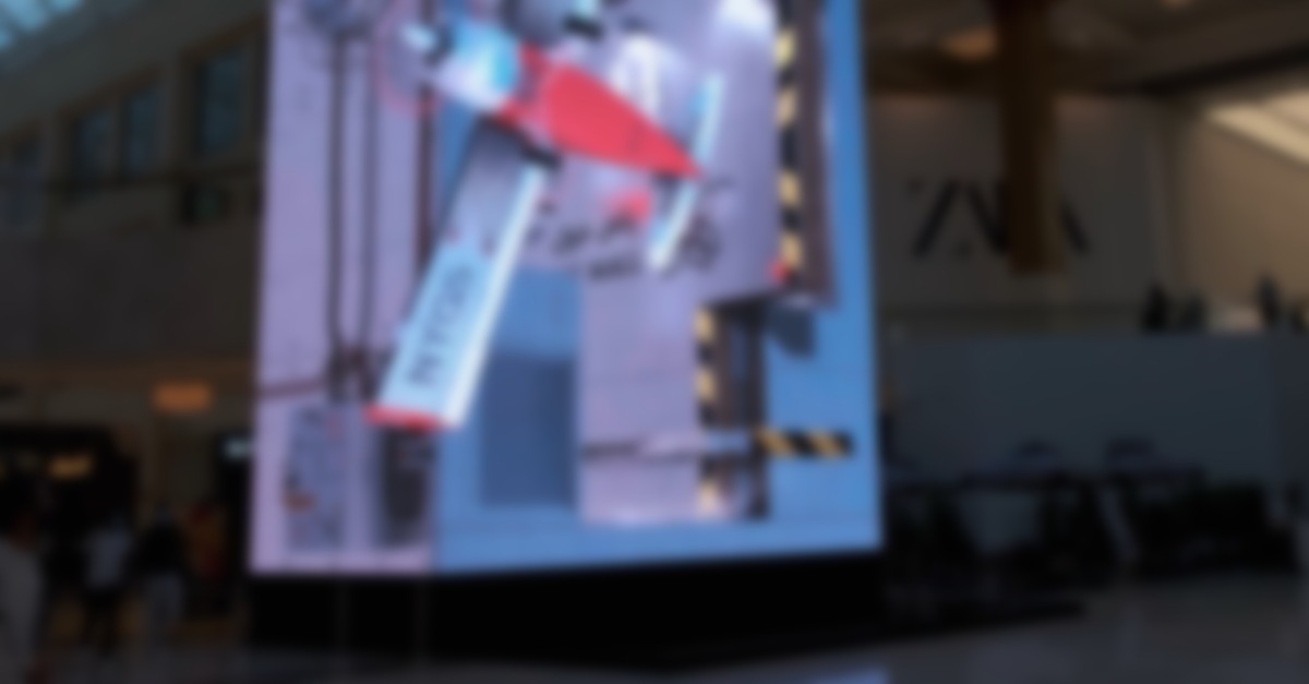 This is the Yas Mall Shopping Center in Abu Dhabi – which has put in a three-sided 170 square meter fine pitch LED display facing into a common area in the shopping center. The Spanish creative technology shop Necsum Trison was engaged to come up with a series of non-commercial digital art pieces that are run as shows.
