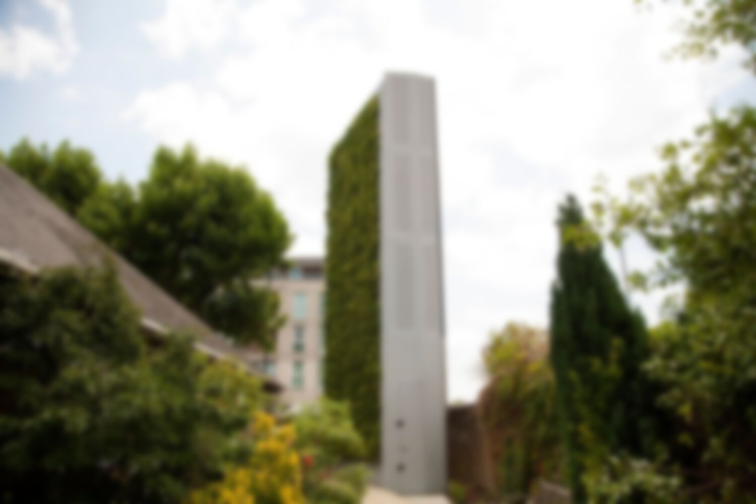 It is a 10 meter high LED board in poster format at a road junction in the Battersea section of London. The business side of the giant display totem that faces motorists is a typical LED face, but instead of a wall of powder-coated metalwork on the rear, it’s a living wall filled with greenery.
