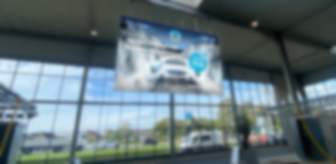 Despite the indoor location, the decision was made to use outdoor LED technology – due to the wet environment that a car wash entails. The product Innscreen LM 4.8 was used, once freely suspended in 6 by 4 meters and once wall-mounted with 5 by 3 meters.