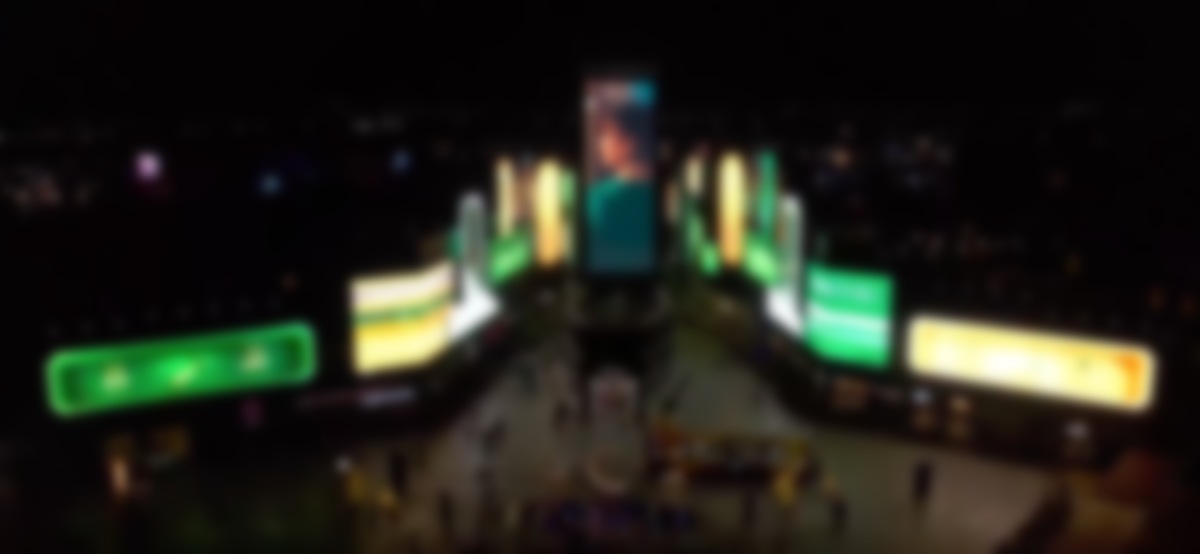 It is sync’d content across 82 screens of varying shapes and scales. The on-screen content was developed and delivered by the Belgian creative technology shop Bureau Beatrice, which recently opened offices in the Middle East. The Linkedin post doesn’t say where, but this is almost certainly the The Riyadh City Boulevard development in Saudi Arabia, which opened last year.