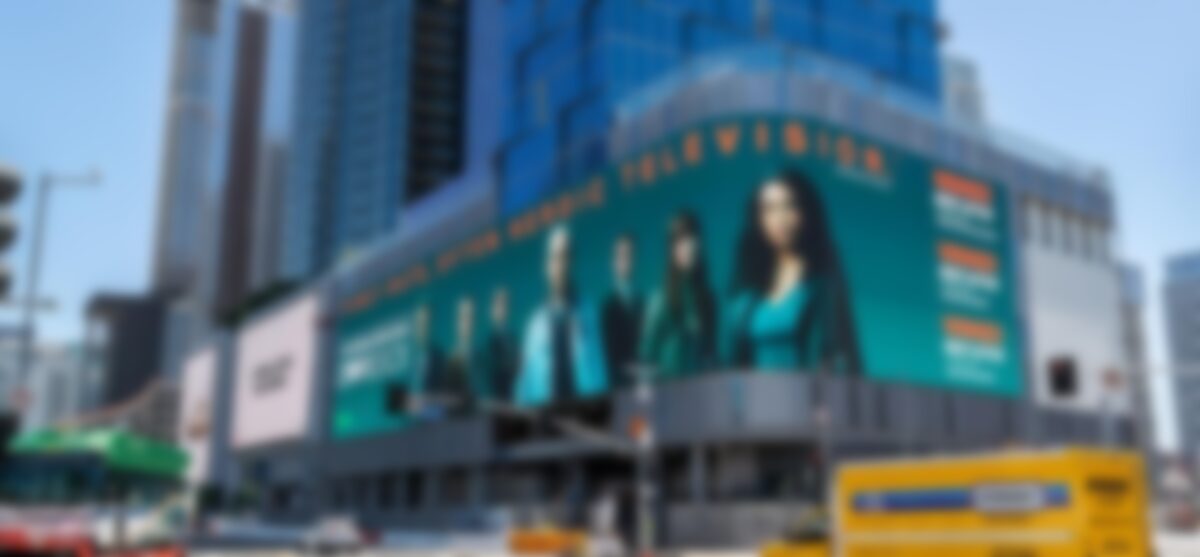 The screen was bankrolled by commercial property owner Lightstone and time on it marketed and sold by the outdoor media company Branded Cities. Consumer Experience Group (CEG), an LA consultancy for experiential display projects, guided the vendor selection and approvals process.