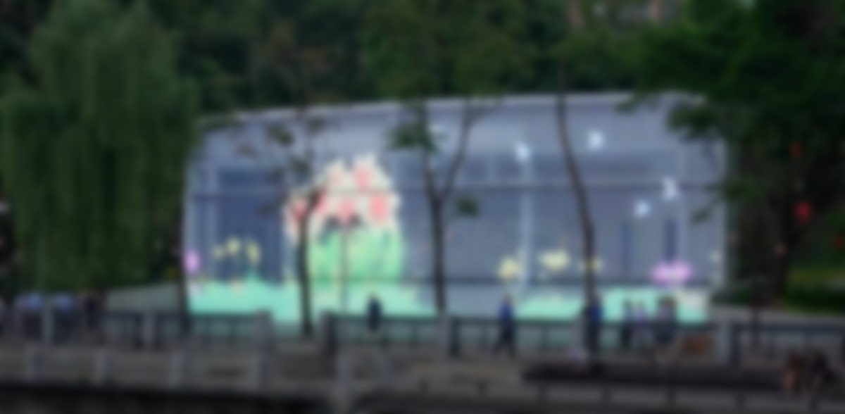 This is a nice use of LED embedded in building glass at some sort of pavilion building in a massive city park in Chengdu, a mega-city in the Sichuan province of China.