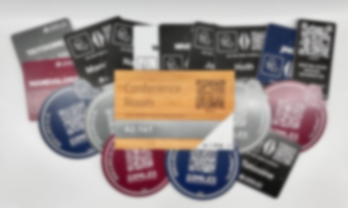 ecoPUK manufactures laser-engraved bamboo and acrylic sign panels used to do things like locate meeting rooms and hot desk areas in workplaces, with staff scanning the QR codes on the sides to launch information on smart phones, using a browser or custom native app.