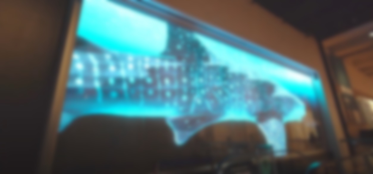This is a nice application of in-glass LED, marking and promoting a short-term exhibition about Sharks at the Australian Museum in Sydney.