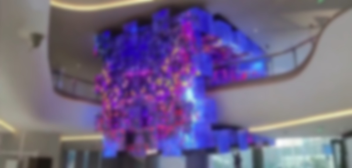 I asked for more when I first saw this on Linkedin, and was told only that this is in Shenzhen, and that it is made of Rubik’s Cube screens???