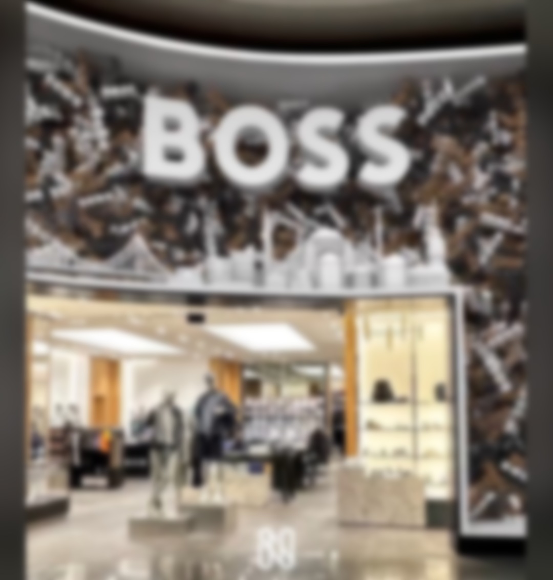 The creative team designed creative for the LED archway at the entrance to like, I dunno … maybe cross-cut shredder paper or dried pasta … all of it with the letters BOSS. They tumble around the virtual display like there’s a low-power fan inside.