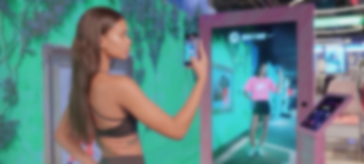 Engaging with the AR Mirror enables customers to pick up the item available for try-on, start a purchase initiation process and be directed to the JD Sports website to complete the purchase of the original physical piece.