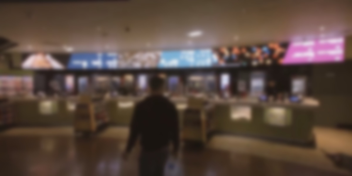 The Showcase Bluewater cinema now has a 12-metre wide LED ribbon display installed on a back wall behind the popcorn and soft drinks order stations. I don’t know the pixel pitch, but it would not have to be overly tight because the wall is set back a bit from the counter and movie-goers, and with a handful of options – instead of dozens at a QSR – means the fonts can be bigger, and less prone to visually pulling apart for the people considering popcorn or not.