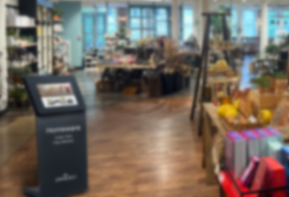 The company has written code that crawls and analyzes local retail sites on Shopify’s vast e-commerce platform and produces interactive experiences that are a lot more than just the online site on a screen in the store. It is curated and stylized to look and work like an in-store interactive site produced by a digital agency – usually for a LOT of money.
