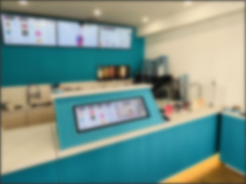 This is an approach to digital menus I haven’t seen before – embedding one of those stretch “bar-type” LCD displays on a tilted stand on the order counter.