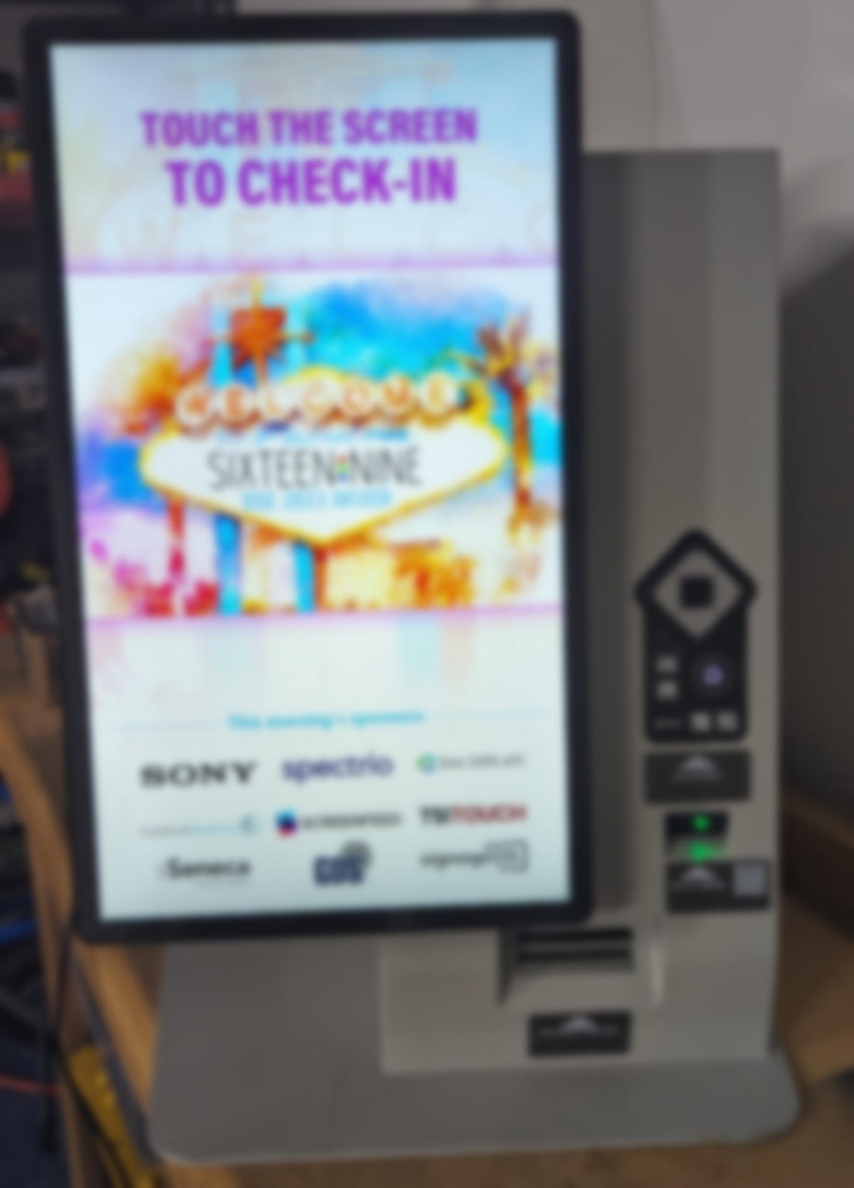 The intention, after years of much-talk-little-action, is to expedite the check-in process for as many as 400 registered attendees. A kiosk will allow people to arrive on the third floor, walk over to one of two kiosks, and boink in their surname on a touchscreen. Their name should pop up, and after confirming that’s the right name, the kiosk will spit out a thermally-printed adhesive label that then attaches to a postcard-sized badge blank that has integrated drink tickets.