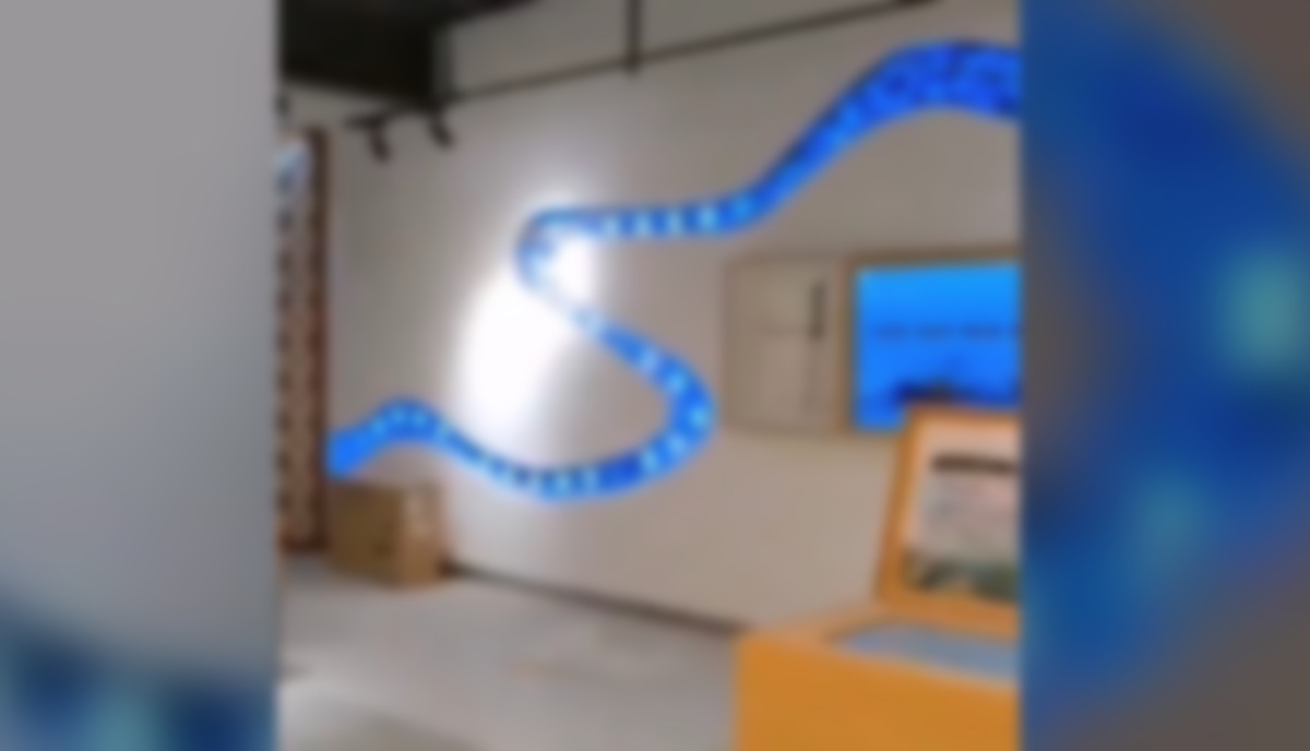 This is an interesting use of LED embedded inside a wall – taking on the appearance of a very big, very long snake.