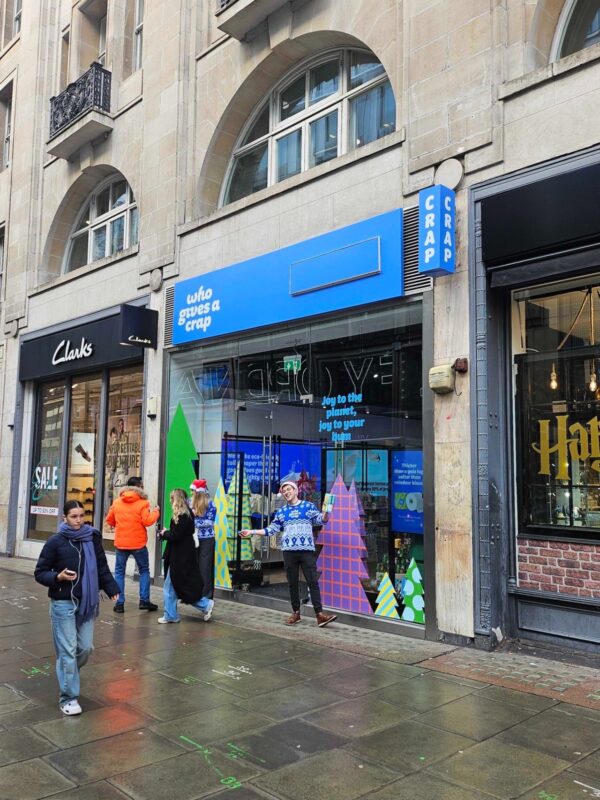This was a fun pop-up done just recently in London for a company that sells recycled toilet paper … as in toilet paper made from recycled paper products, and not where your mind might have gone.